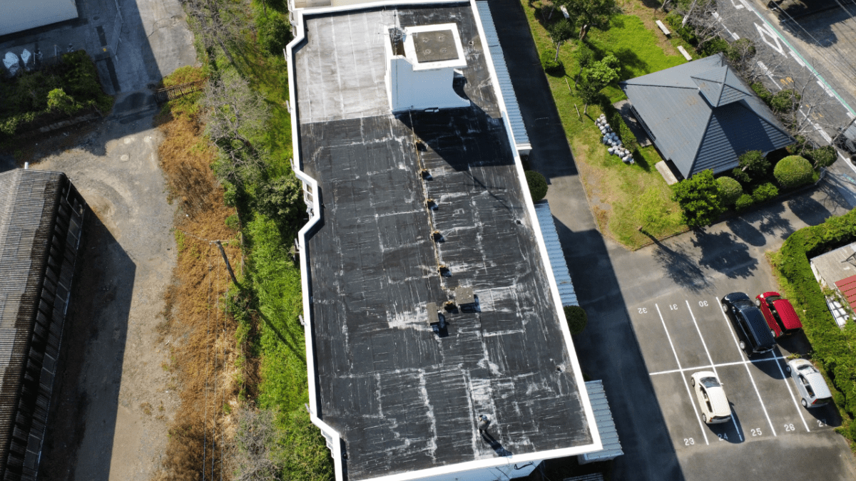 改質アスファルトシート防水(AS-J1)常温粘着工法で施工しました。